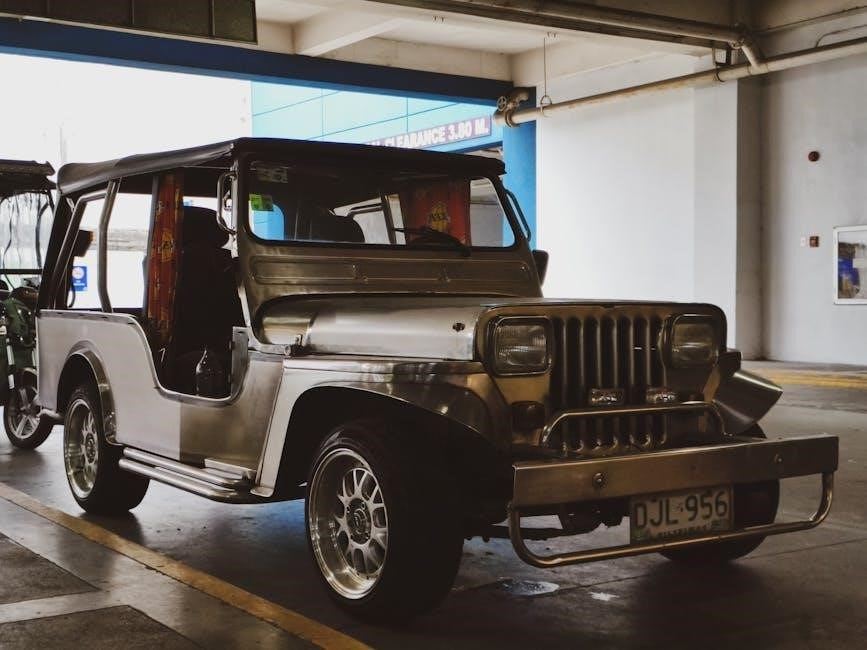 The 1988 Jeep Grand Wagoneer TBI throttle body rebuild involves disassembling, cleaning, and reassembling components. Key steps include removing the intake manifold, disconnecting the throttle cable, and replacing worn parts. Proper cleaning and inspection ensure optimal performance. Reassembly requires precise alignment and installation of new gaskets and sensors. After reinstallation, testing the system confirms its functionality. This process restores reliability and efficiency, ensuring smooth engine operation and improved drivability.